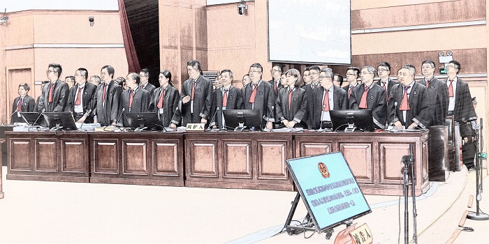 鄂州市中级人民法院依法采用了“3名法官+4名人民陪审员”的7人制合议庭进行审理,10名检察人员出庭支持公诉,周闯等38名被告人出庭受审,41名辩护人以及鉴定人到庭参加诉讼。